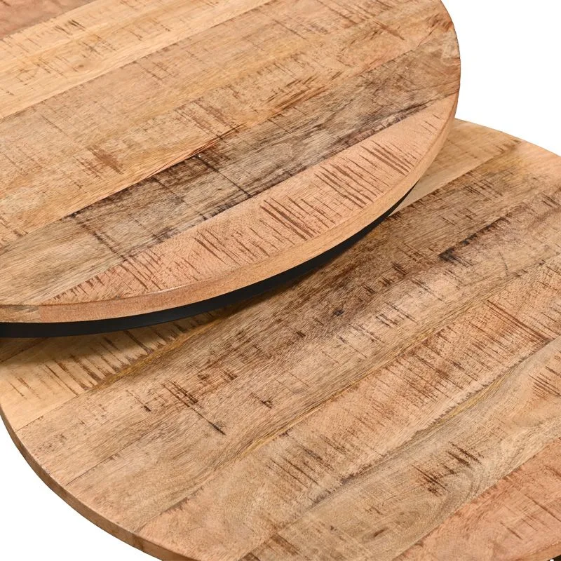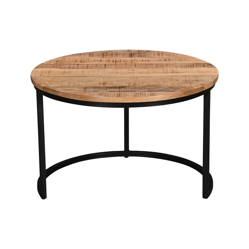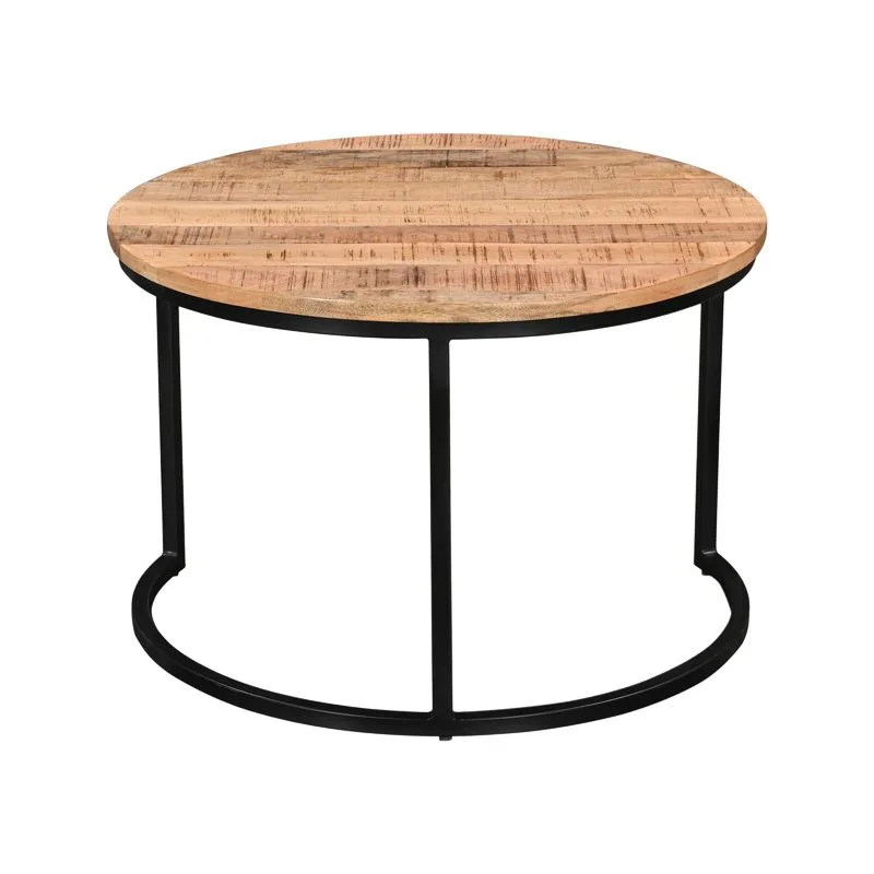 Τραπέζι σαλονιού Frina σετ 3τεμ μασίφ mango ξύλο σε φυσική απόχρωση με πόδι μαύρο μέταλλο