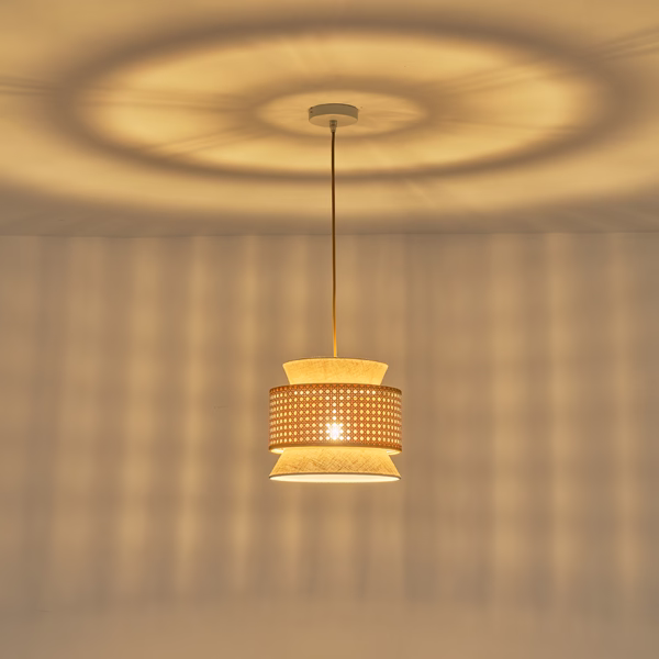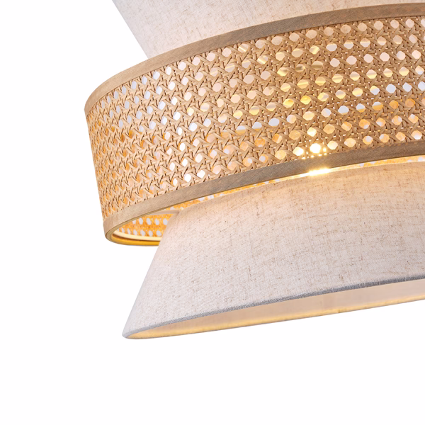 Κρεμαστό φωτιστικό ISLA από μέταλλο, ύφασμα και χαρτί σε μπεζ απόχρωση. Διαθέτει ντουί E27 για λαμπτήρα έως 15W, ιδανικό για τραπεζαρίες, καθιστικά ή επαγγελματικούς χώρους με φυσικό και cozy design.