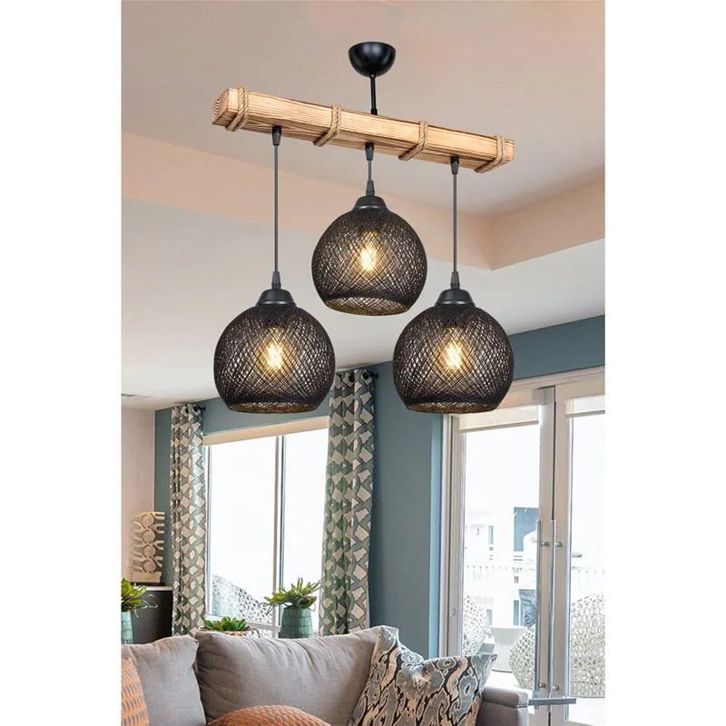 Φωτιστικό οροφής τρίφωτο Fiona Ε27 μαύρο-φυσικό 50x20x63εκ