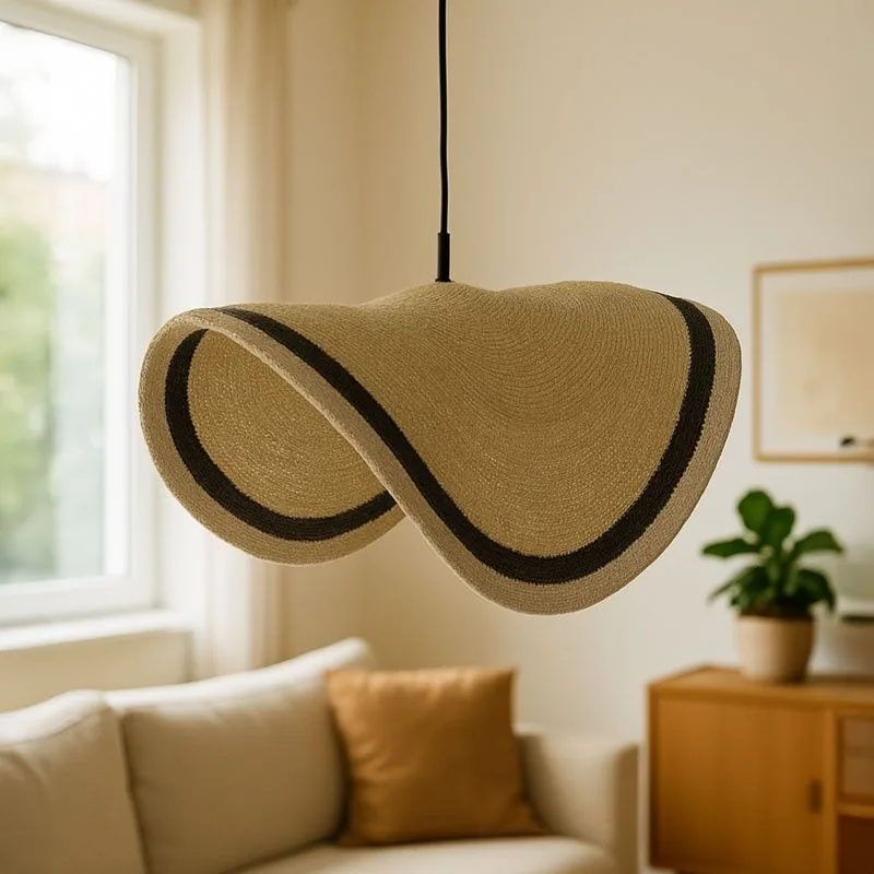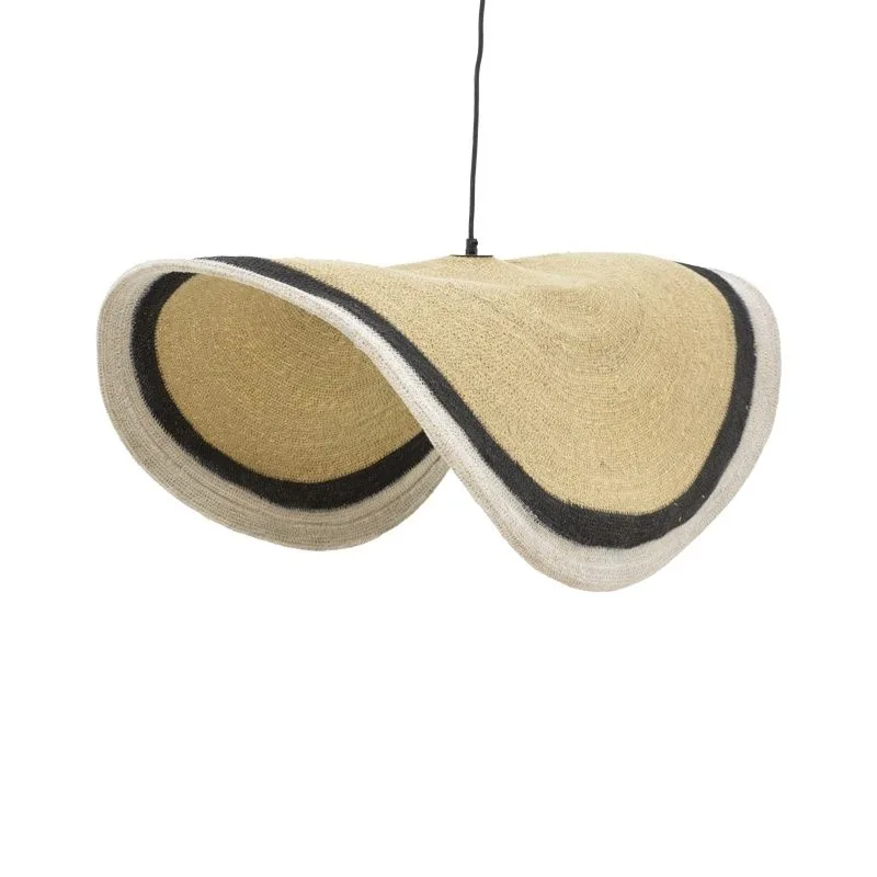 Φωτιστικό οροφής Hatchie φυσικό-μαύρο-λευκό ψάθα-μέταλλο Φ100×133εκ