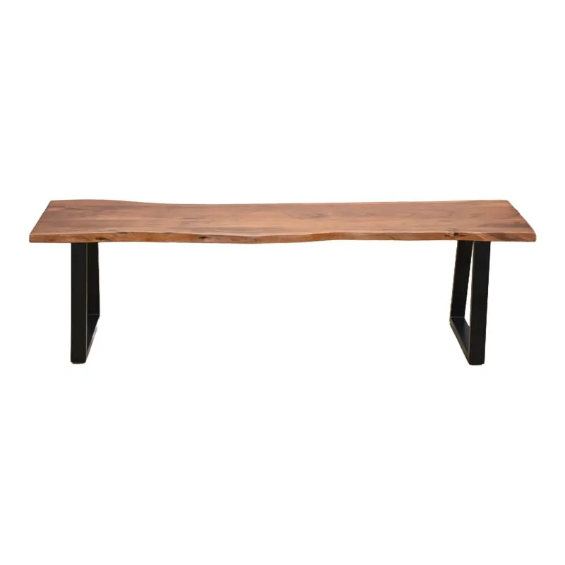 Παγκάκι Miles Slim μασίφ ξύλο ακακίας σε καρυδί απόχρωση με μαύρα μεταλλικά πόδια 160x40x45εκ
