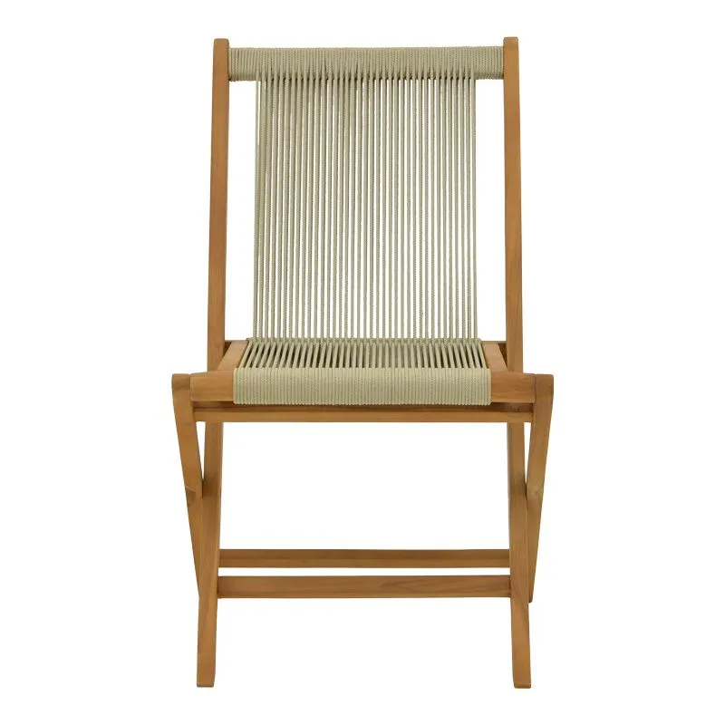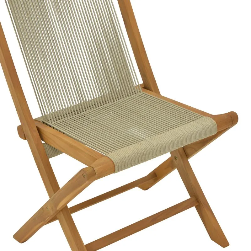 Καρέκλα Banou πτυσσόμενη teak ξύλο και pe σχοινί σε φυσική απόχρωση 52.5x56x89εκ