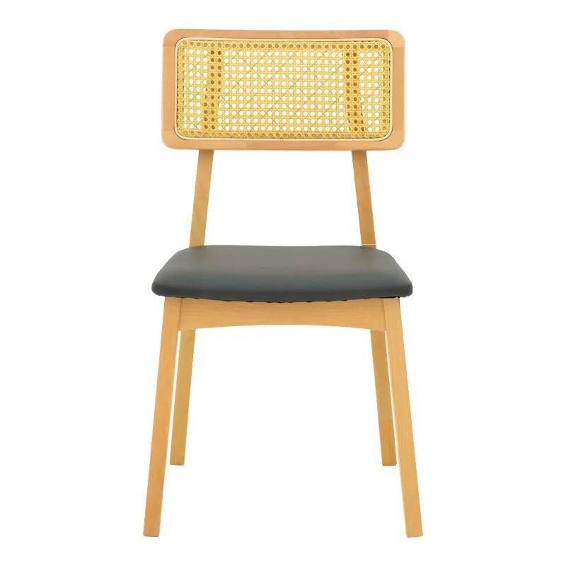 Καρέκλα Renna ξύλο οξιάς σε φυσική απόχρωση με μαύρο pu μαξιλάρι 48x52x79εκ