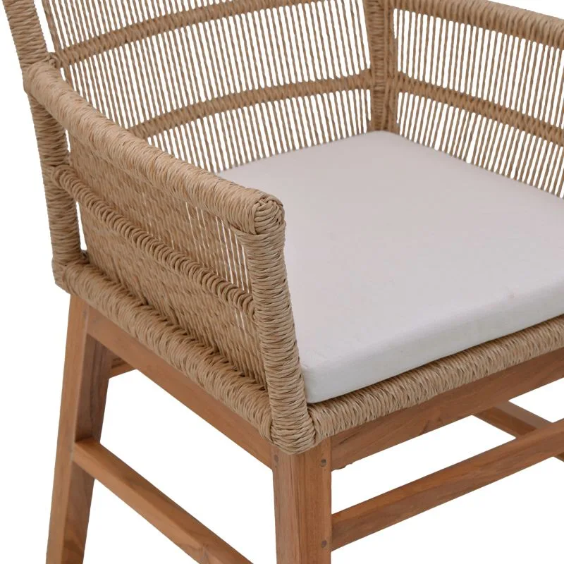 Πολυθρόνα Inca teak ξύλο και pe σχοινί σε φυσική-μπεζ απόχρωση με μαξιλάρι 60x61x90εκ