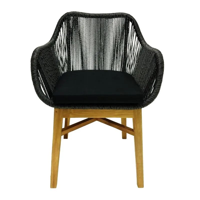 Πολυθρόνα Kalie teak ξύλο και συνθετικό σχοινί σε φυσική-μαύρη απόχρωση με μαξιλάρι 60x61x80εκ