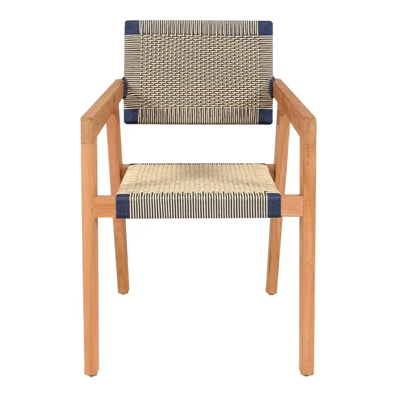 Πολυθρόνα Salama σκελετός teak ξύλο σε φυσική απόχρωση και κρεμ-μαύρο pe σχοινί 57x60x85εκ