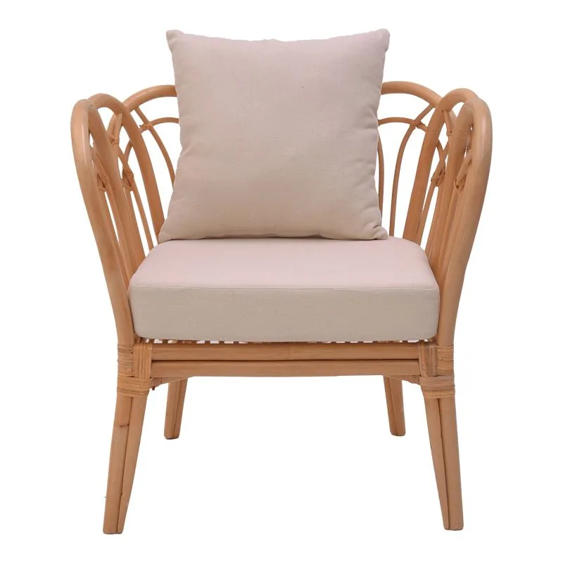 Πολυθρόνα Tania φυσικό rattan-λευκό μαξιλάρι 76x76x76εκ