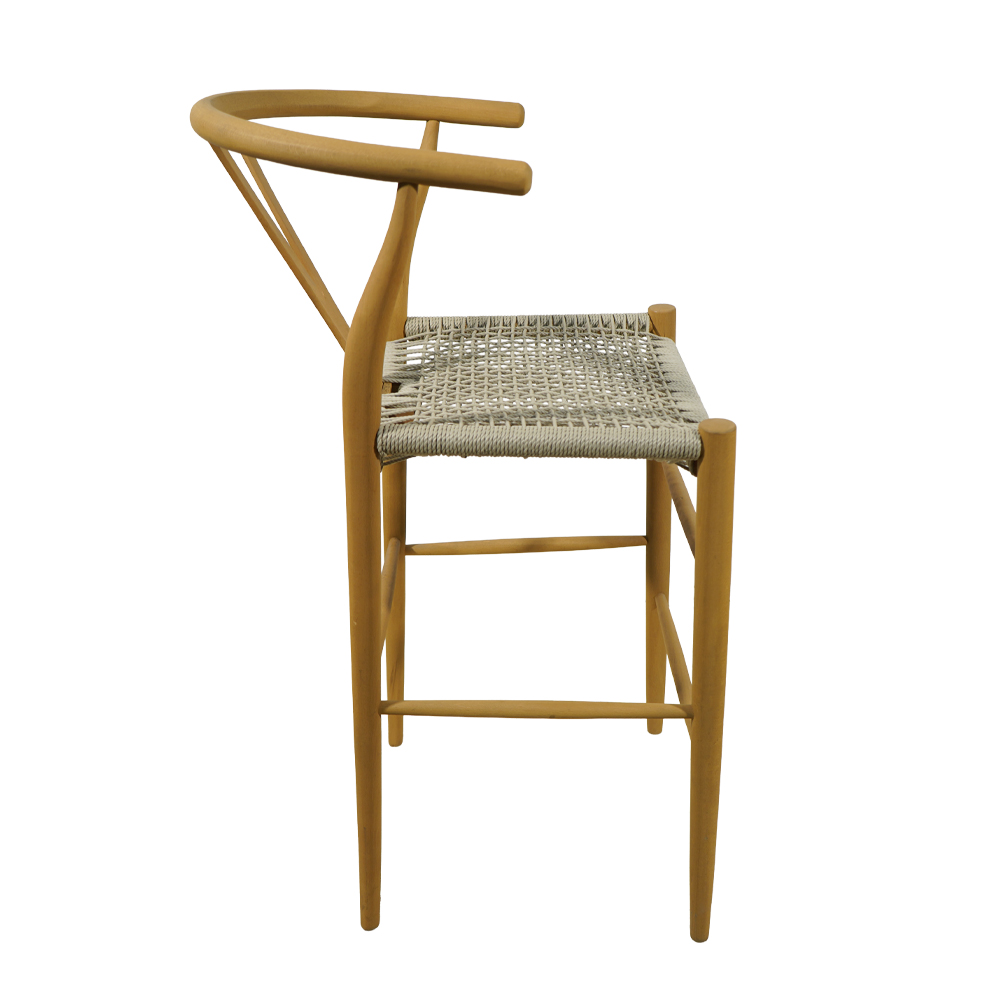 Αναβαθμίστε τη διακόσμηση του χώρου σας με αυτό το κομψό και διαχρονικό ξύλινο σκαμπό μπαρ. Εμπνευσμένο από το εμβληματικό σχέδιο Wishbone, διαθέτει εργονομική πλάτη σε σχήμα Υ για άνετη στήριξη και υψηλή αισθητική. Το χειροποίητο ψάθινο κάθισμα προσφέρει φυσική αίσθηση και εξαιρετική αντοχή, ενώ η στιβαρή κατασκευή από μασίφ ξύλο εξασφαλίζει μακροχρόνια χρήση.