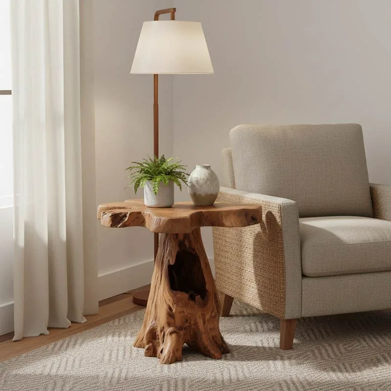 Βοηθητικό τραπέζι Mushile pakoworld teak ξύλο σε φυσική απόχρωση 30x35x45εκ