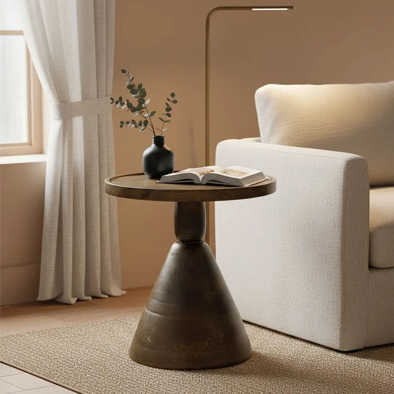 Βοηθητικό τραπέζι Spello μασίφ mango ξύλο σε καρυδι απόχρωση Φ38×46εκ