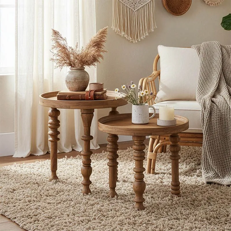 Τραπέζι σαλονιού Kelly σετ 2τεμ μασίφ ξύλο ακακίας φυσικό