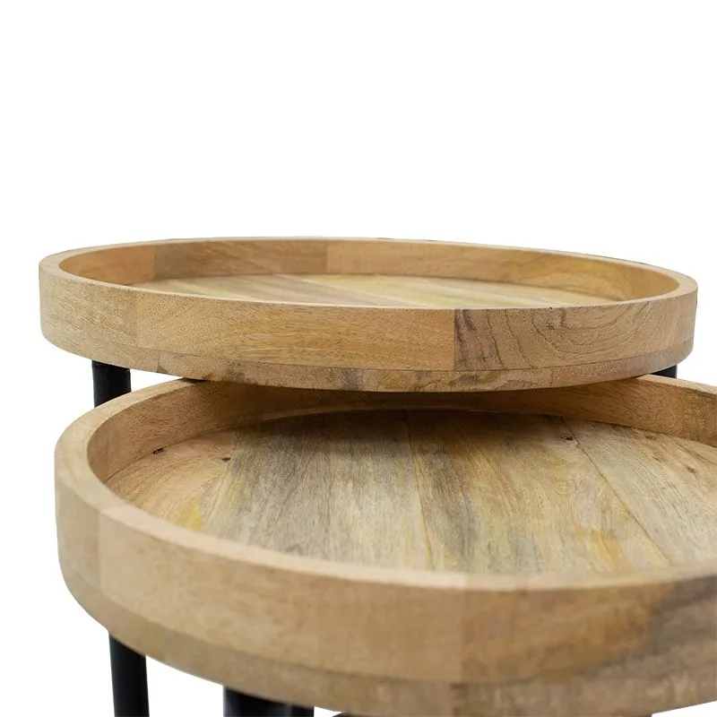 Τραπέζι σαλονιού Kelly σετ 2τεμ μασίφ ξύλο φυσικό-μαύρο