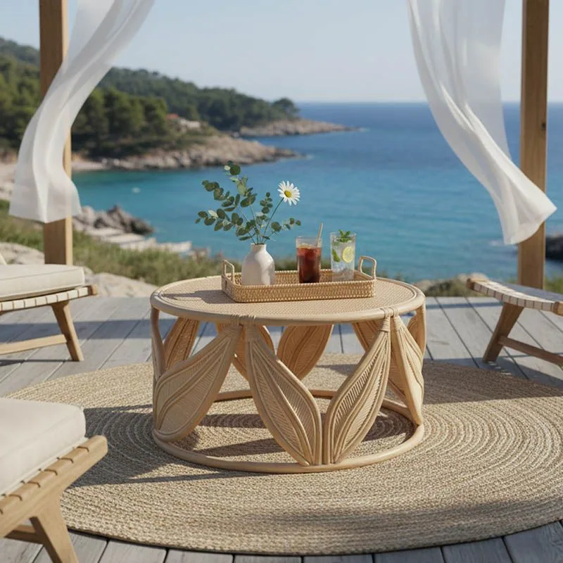 Τραπέζι σαλονιού Siderty rattan σε φυσική απόχρωση Φ80×45εκ