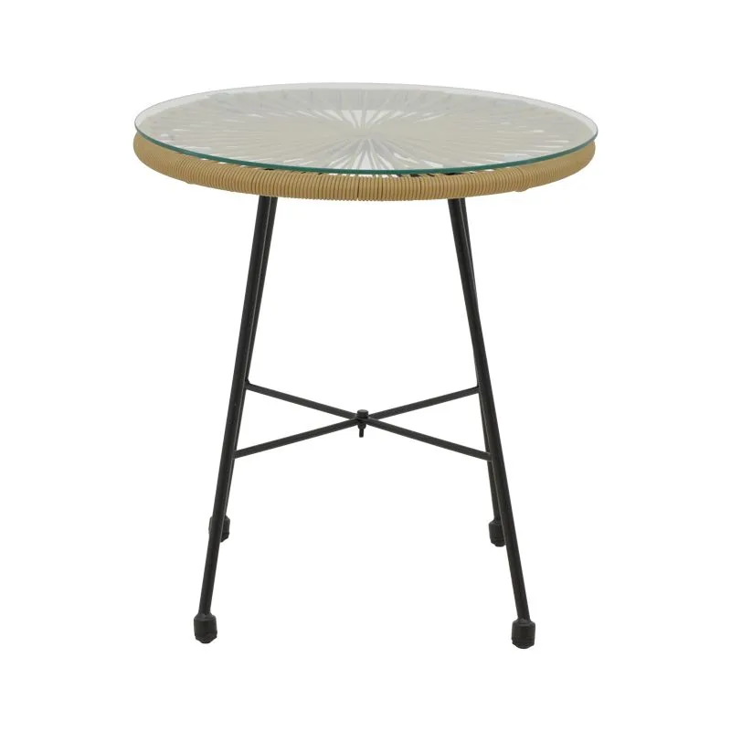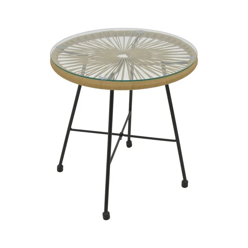 Τραπέζι Acapulco μαύρο μέταλλο – pe rattan σε φυσική απόχρωση Φ50×50εκ