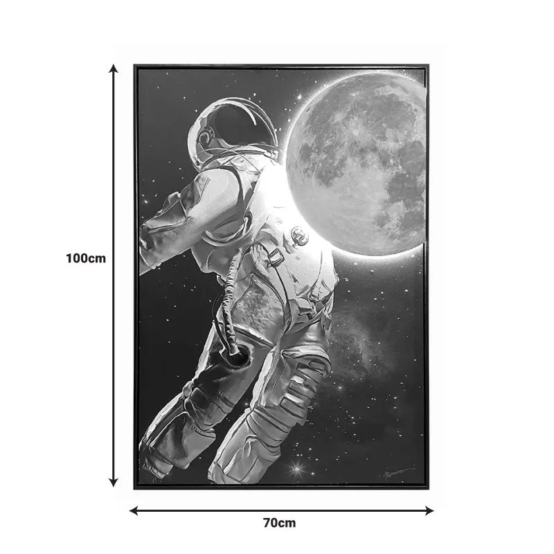 Ανανεώστε τον χώρο σας με έναν εντυπωσιακό πίνακα μοντέρνας τέχνης! Ο πίνακας σε καμβά Mallo απεικονίζει έναν αστροναύτη που φαίνεται να αγγίζει το φεγγάρι, σε ένα μαγευτικό σκηνικό διαστήματος γεμάτο αστέρια και νεφελώματα. Με φουτουριστική αισθητική και υψηλής ποιότητας εκτύπωση, αποτελεί ιδανική επιλογή για το σαλόνι, το υπνοδωμάτιο ή το γραφείο σας.