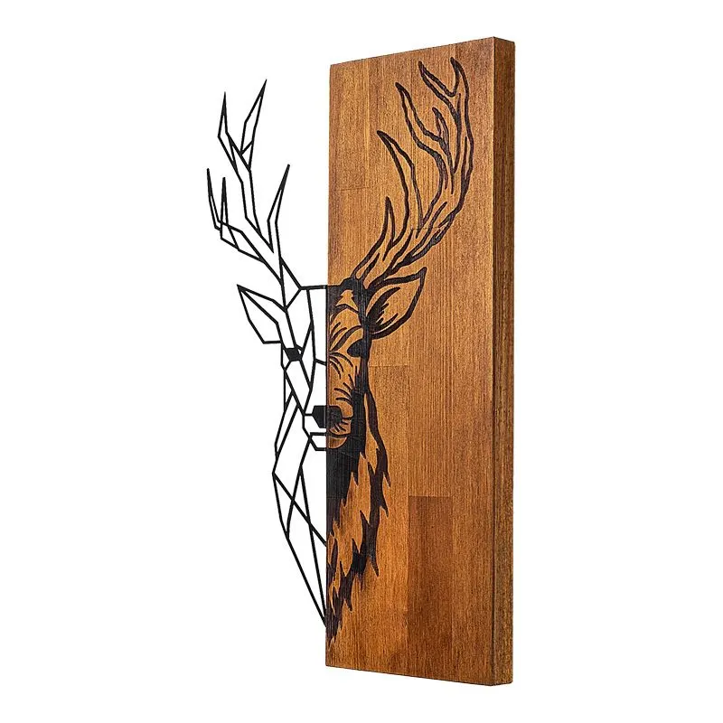 Εμπνεύστε τον χώρο σας με την άγρια ομορφιά της φύσης! Αυτό το εντυπωσιακό μεταλλικό διακοσμητικό τοίχου απεικονίζει ένα επιβλητικό ελάφι με λεπτομερείς διακλαδώσεις στα κέρατά του. Η αντίθεση του σκούρου μετάλλου πάνω στο ζεστό ξύλο δημιουργεί ένα εντυπωσιακό τρισδιάστατο εφέ που θα μαγνητίσει τα βλέμματα. Ιδανικό για τους λάτρεις της φύσης και του rustic design, αυτό το μοναδικό έργο τέχνης θα προσθέσει μια αίσθηση γαλήνης και μεγαλείου σε κάθε δωμάτιο.
