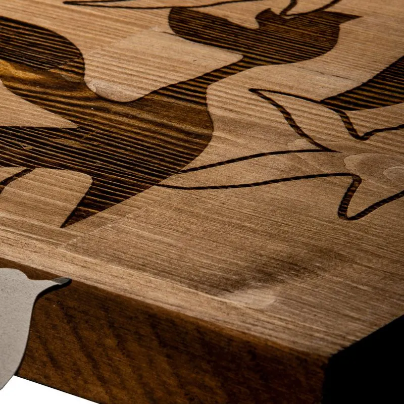 - Κατασκευασμένο από ξύλο πεύκου υψηλής ποιότητας (3cm) με το σχέδιο να είναι κατασκευασμένο από μέταλλο σε μαύρο χρώμα (1,2mm).