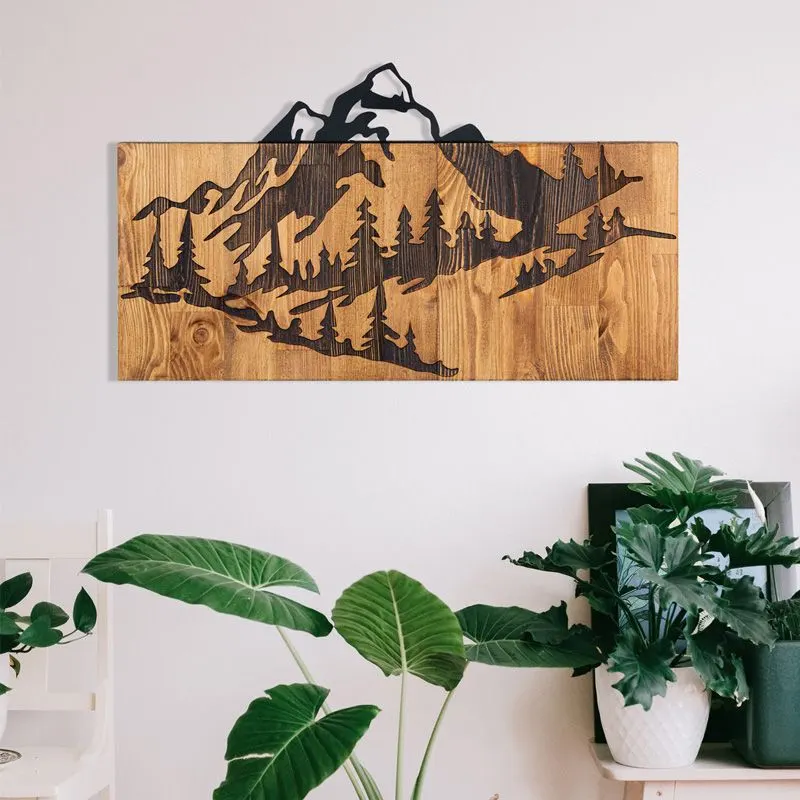 - Κατασκευασμένο από ξύλο πεύκου υψηλής ποιότητας (3mm) με το σχέδιο των βουνών να είναι κατασκευασμένο από μέταλλο σε μαύρο χρώμα (1,5mm).