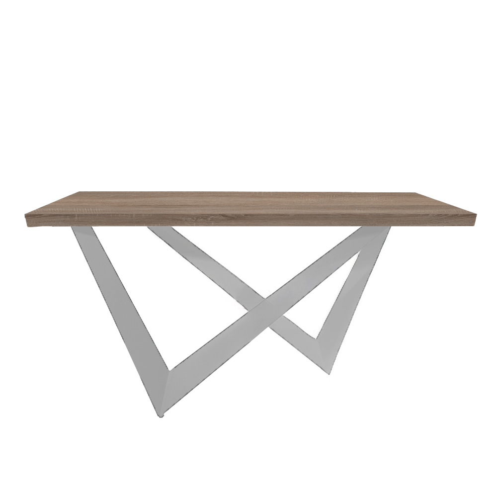 Ανανεώστε τον χώρο σας με αυτή τη μοντέρνα κονσόλα που συνδυάζει τη φυσική αισθητική του ξύλου με τον βιομηχανικό χαρακτήρα του μετάλλου. Η επιφάνειά της είναι κατασκευασμένη από υψηλής ποιότητας ξύλο σε φυσικό χρώμα με εμφανή νερά, προσδίδοντας ζεστασιά και κομψότητα. Η μεταλλική της βάση σε αντικριστό “V” σχεδιασμό – σε άσπρο χρώμα – προσφέρει εξαιρετική σταθερότητα και μοναδικό οπτικό ενδιαφέρον.