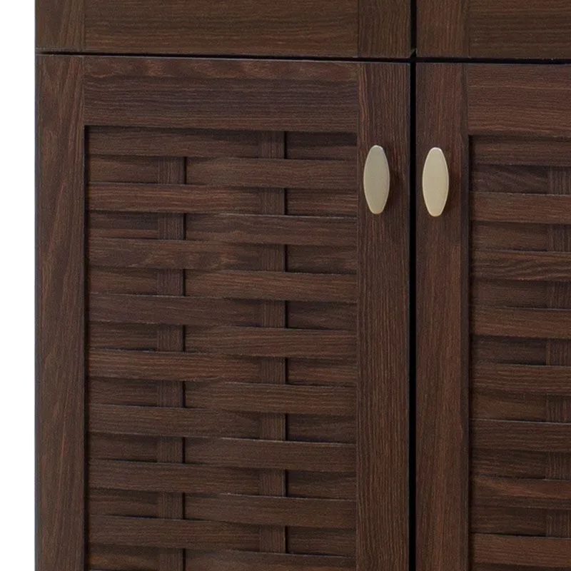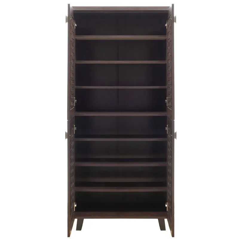 - Περιλαμβάνει τέσσερις πόρτες σε σχέδιο-μοτίβο πλέγματος, εσωτερικά φέρει επτά ράφια για 24 ζεύγη παπουτσιών, ρούχα ή αξεσουάρ.
