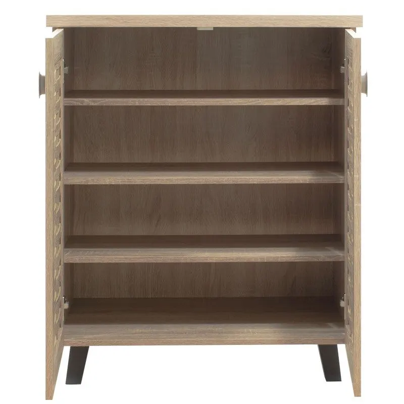- Περιλαμβάνει δύο πόρτες σε σχέδιο-μοτίβο πλέγματος, εσωτερικά φέρει τρία ράφια για 12 ζεύγη παπουτσιών, ρούχα ή αξεσουάρ.