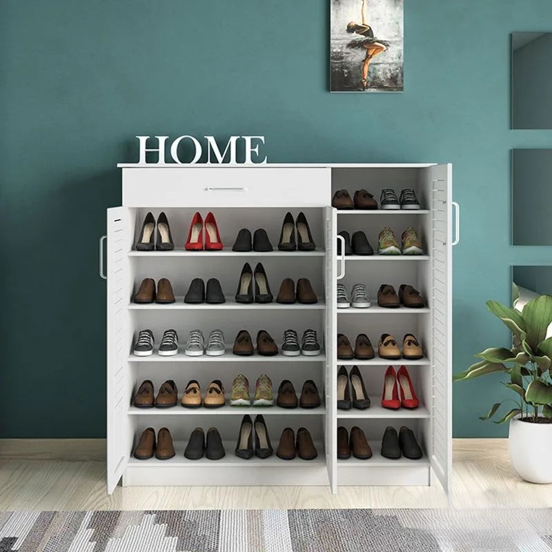 Παπουτσοθήκη-ντουλάπι SANTE με 3 πόρτες & 1 συρτάρι χωρητικότητας 30 ζεύγη λευκό 120x37x123 εκ