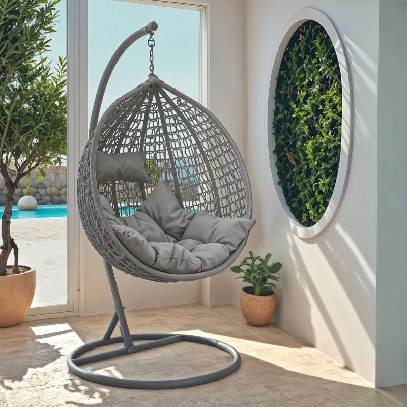 Κούνια Zafer κρεμαστή μέταλλο-pp-μαξιλάρι γκρι