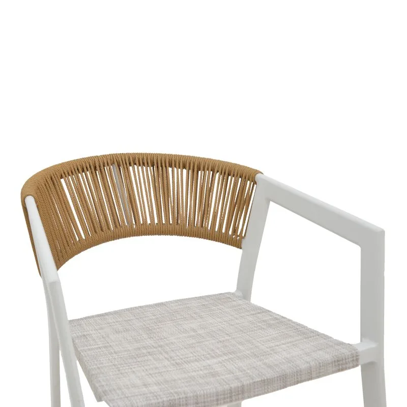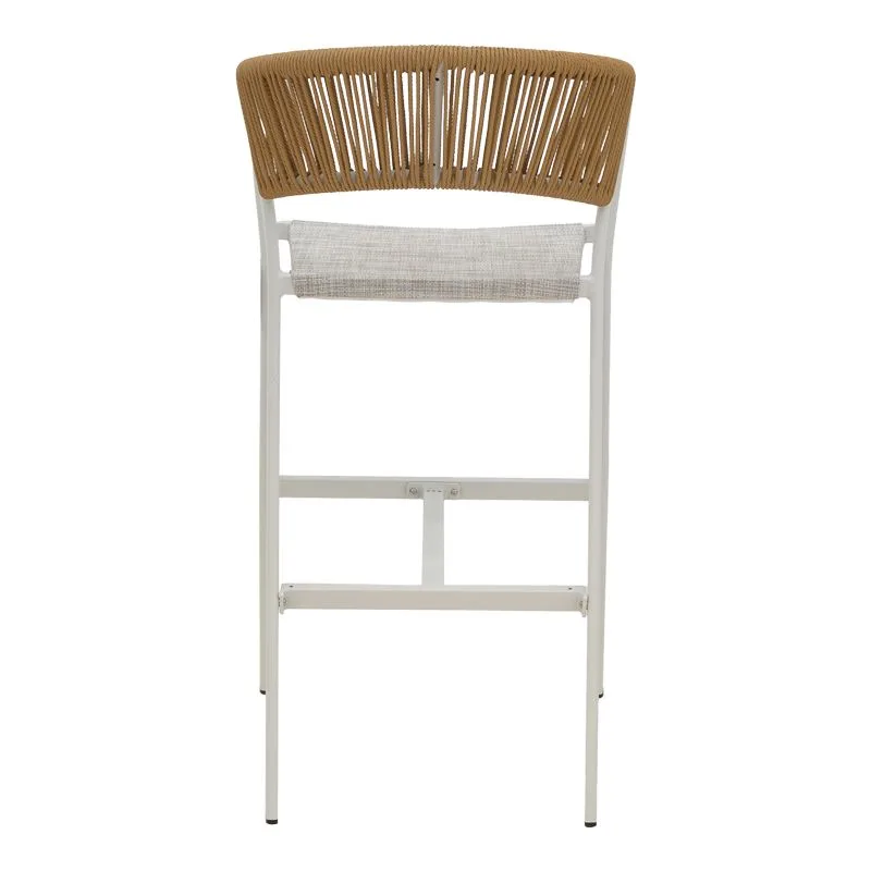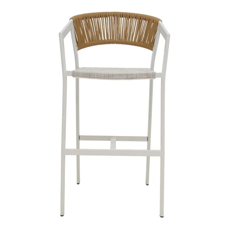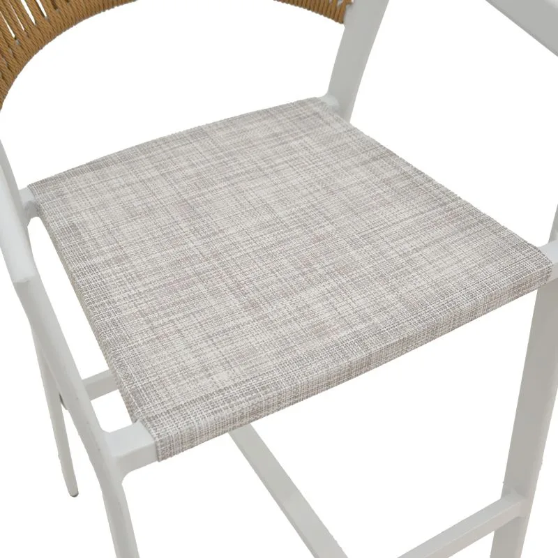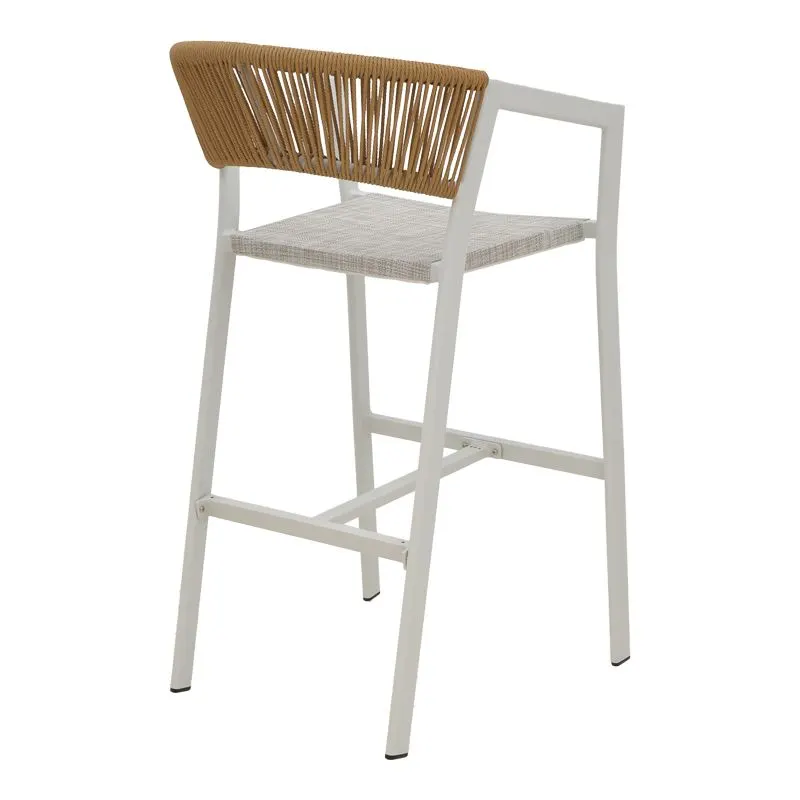 Σκαμπό μπαρ αλουμινίου Phoenix στοιβαζόμενo λευκός σκελετός-textilene φυσικό rattan