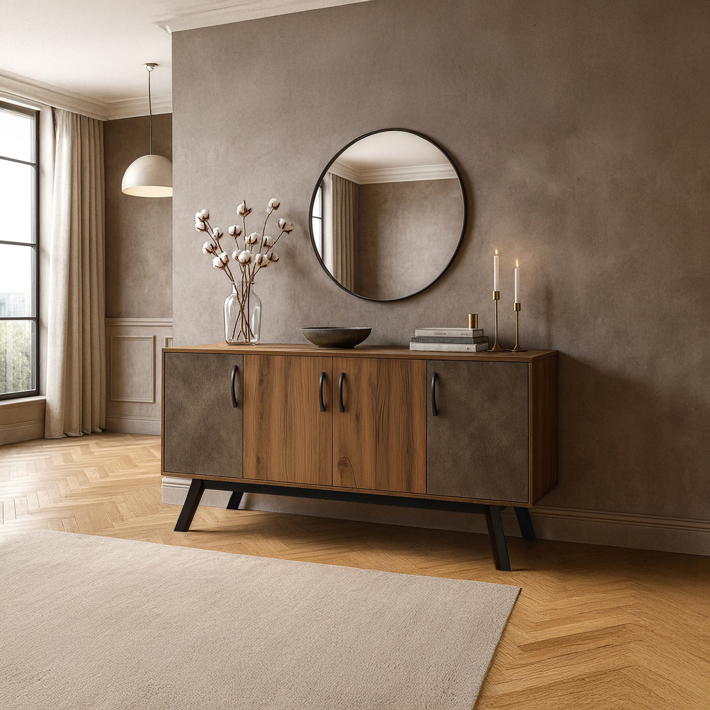 Ένας μπουφές με συνδυασμό δύο υλικών, του μαρμάρου που θα προσδώσει μία αίσθηση φρεσκάδας και του ξύλου που είναι πάντα διαχρονικό και επίκαιρο. Τα τέσσερα ντουλάπια που διαθέτει, θα σας βοηθήσουν να οργανώσετε όλα σας τα αντικείμενα.