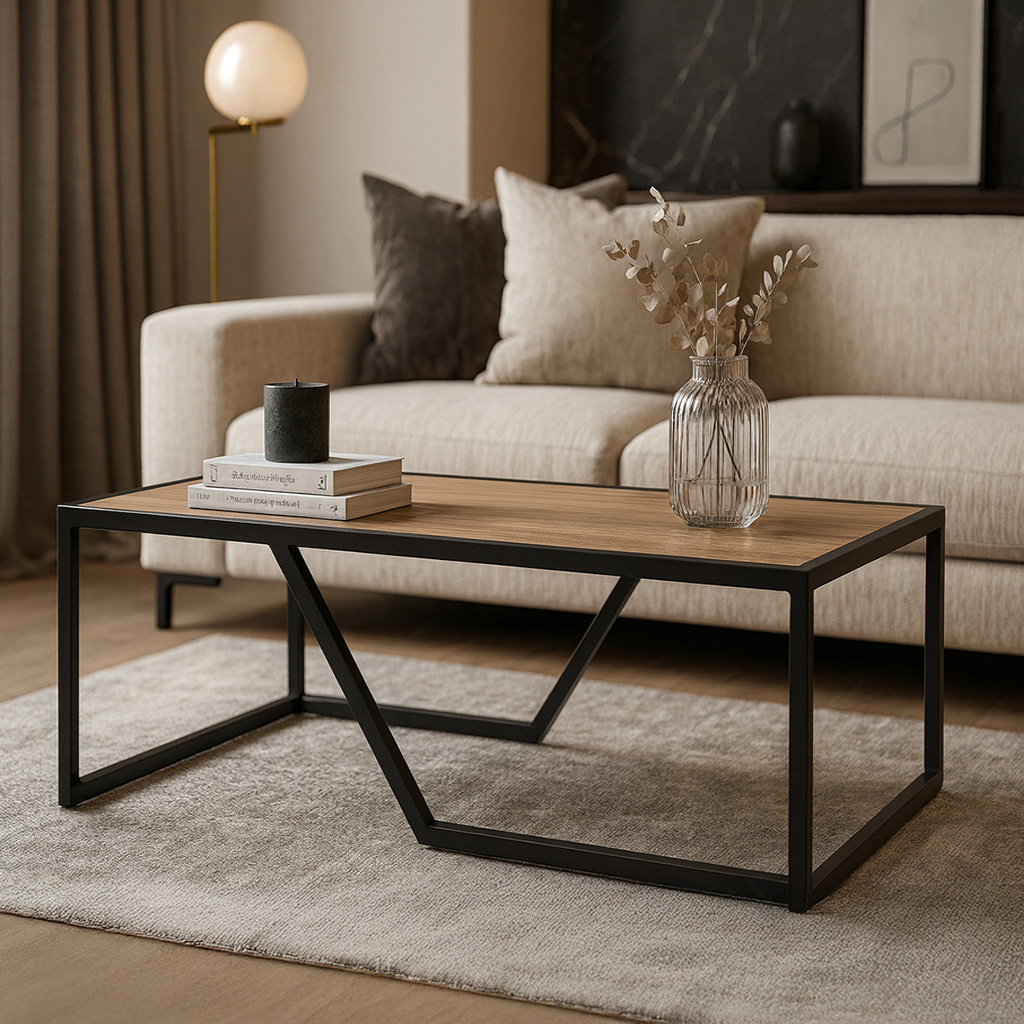ΤΡΑΠΕΖΙ ΣΑΛΟΝΙΟΥ MAIA ΜΕ ΞΥΛΙΝΗ ΕΠΙΦΑΝΕΙΑ ΚΑΙ ΜΕΤΑΛΛΙΚΟ ΣΚΕΛΕΤΟ