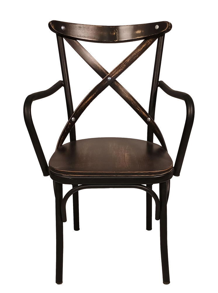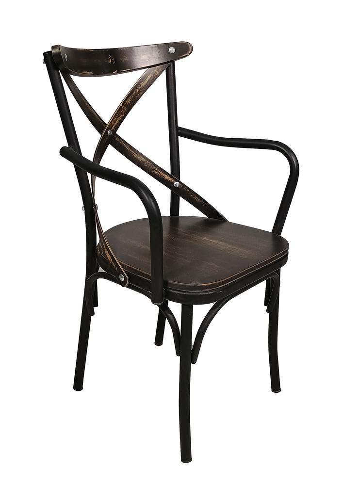 Βιομηχανική Καρέκλα ANTIC Με Μπράτσα & Ξύλινη Πλάτη “X”