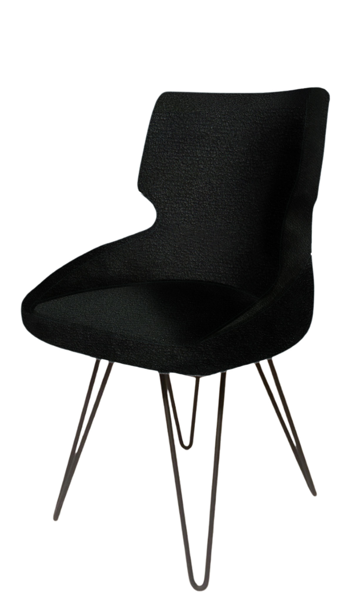 Καρέκλα με μεταλλική βάση σε μαύρο ματ και επένδυση από μαύρο ύφασμα τύπου βελούδο σε πρωτότυπο σχεδιασμό