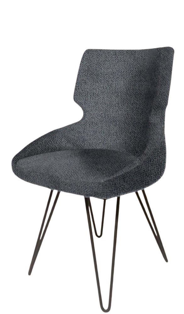 Καρέκλα με μεταλλική βάση σε μαύρο ματ και επένδυση από μπλέ ράφ ύφασμα τύπου βελούδο σε πρωτότυπο σχεδιασμό