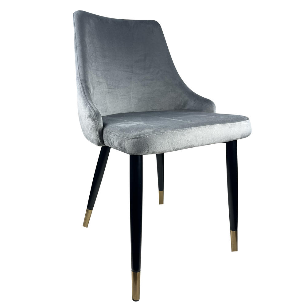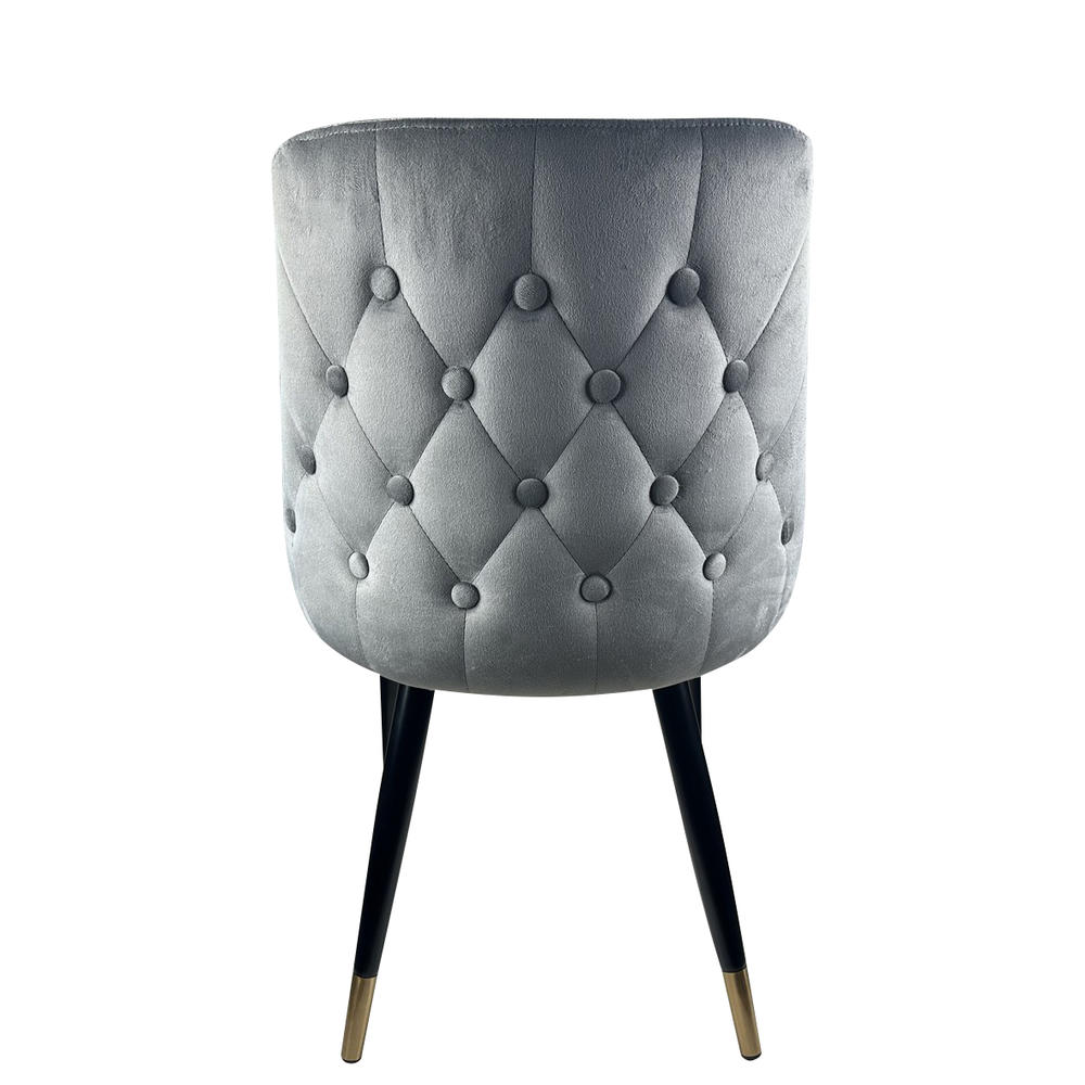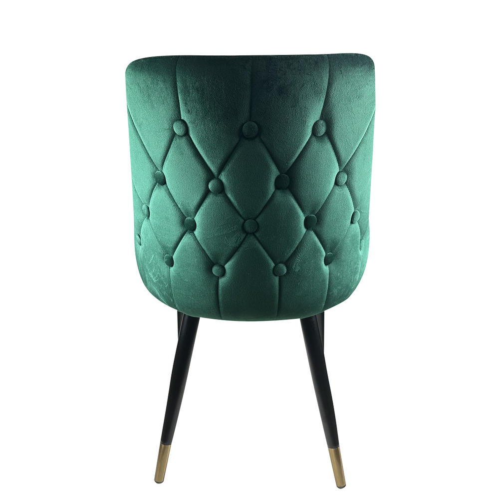 Καρέκλα τραπεζαρίας QUEENS σε κλασικό σχεδιασμό με επένδυση από βελούδο και μεταλλικά στιβαρά πόδια σε μαύρο και χρυσό χρώμα. Το κάθισμο είνα ευρύχωρο και βολικό, με καπιτονέ πλάτη, κατασκευασμένο από ανθεκτικό ξύλινο σκελετό με βελούδινη επένδυση και γέμιση από υψηλής ποιότητας αφρώδη υλικά. Καρέκλα κλασική και συνάμα λιτή που θα αποτελέσει ανασπόσπαστο κομμάτι ενός σετ τραπεζαρίας ή και σαλονιού και θα αναδείξει τον οποιοδήποτε χώρο σας.