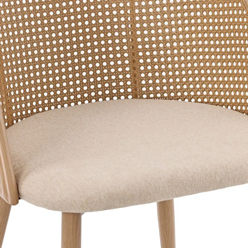 Καρέκλα Riccardo φυσικό pe rattan-μπεζ ύφασμα-φυσικό μέταλλο 56x52x82εκ