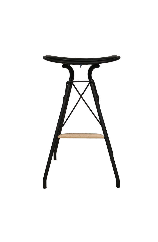 Φέρτε βιομηχανική κομψότητα στον χώρο σας με αυτό το μοντέρνο σκαμπό bar. Ο συνδυασμός μεταλλικού σκελετού, μαύρης δερματίνης και ξύλινου υποποδίου δημιουργεί μια ισορροπία ανάμεσα στην ανθεκτικότητα και το εκλεπτυσμένο στυλ, ιδανική για bar, κουζίνα ή επαγγελματικούς χώρους εστίασης.