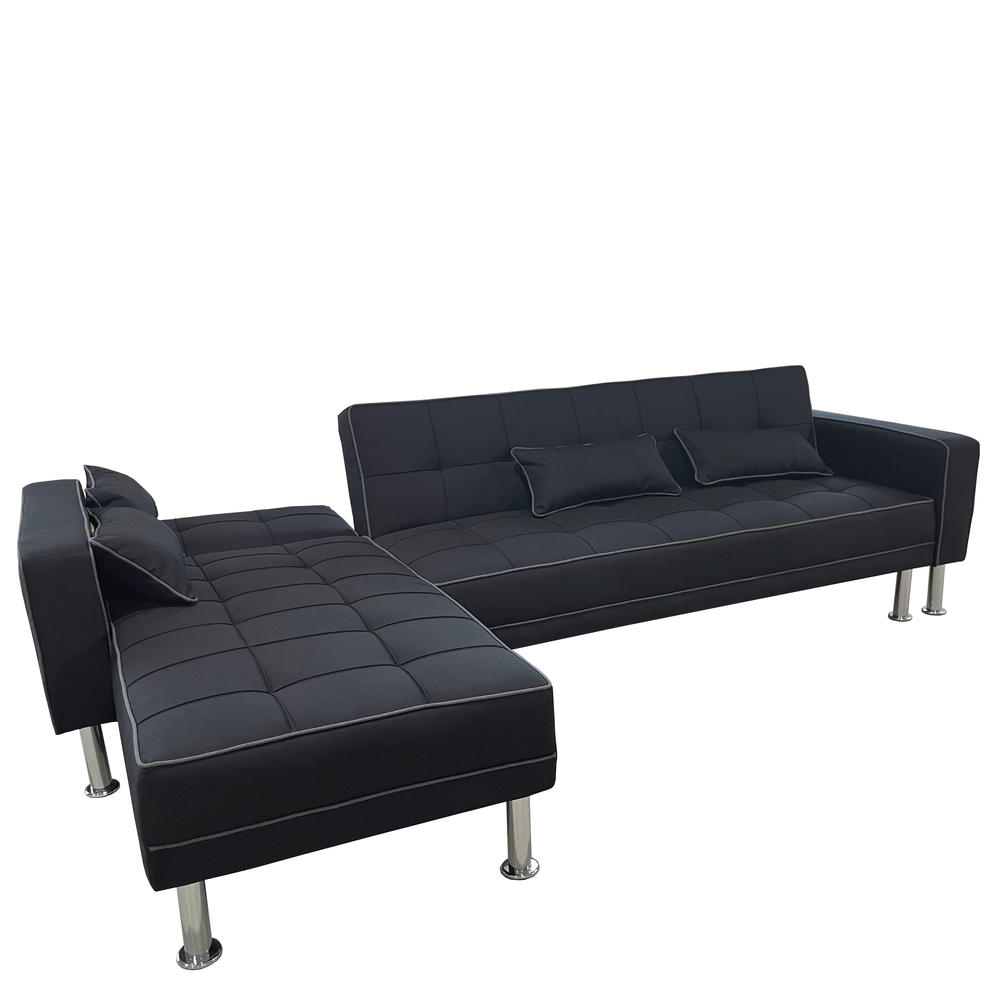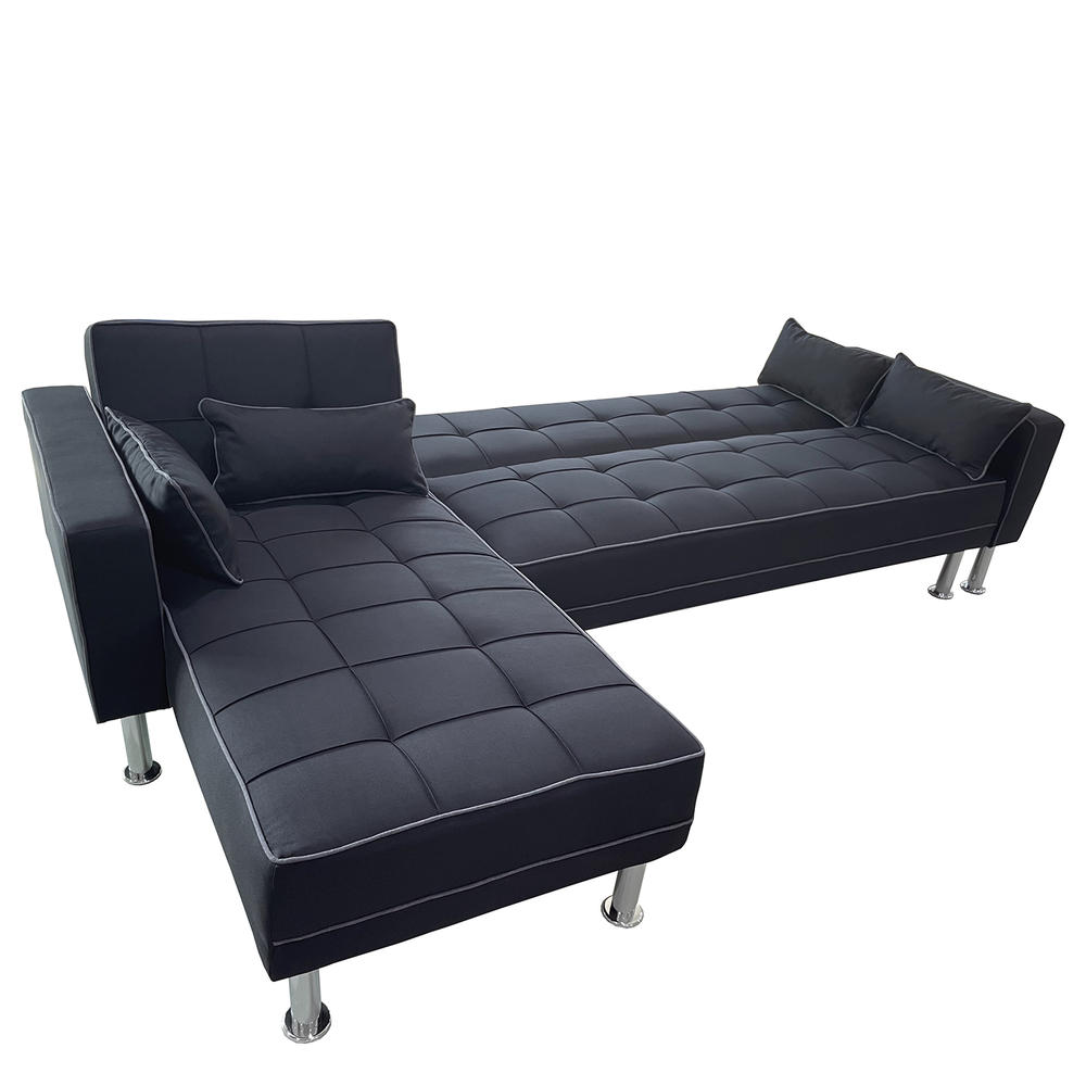 Καναπές Κρεβάτι Γωνιακός MICHA Αναστρέψιμος Μαύρο/Γκρι Ύφασμα 300x112x76cm