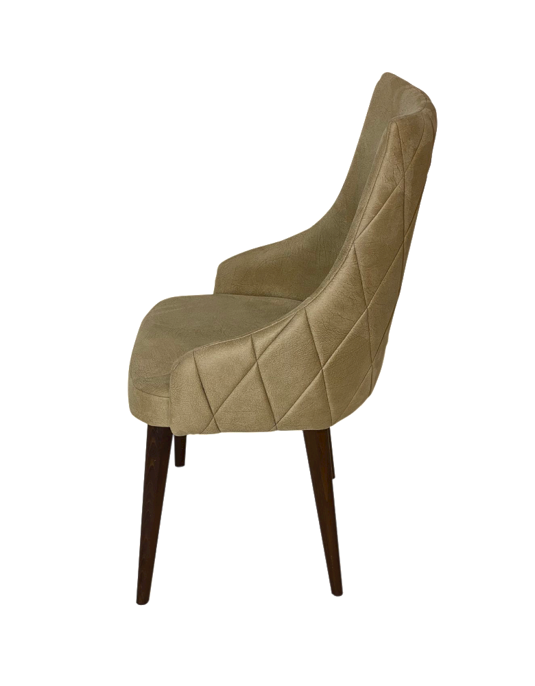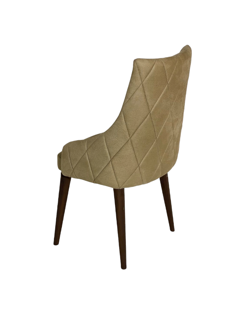 Φέρτε κομψότητα και άνεση στον χώρο σας με αυτή την πολυτελή καρέκλα τραπεζαρίας. Το εκλεπτυσμένο design της με ενσωματωμένα μπράτσα και διακριτικές ραφές στην πλάτη, προσφέρει στήριξη και στυλ. Η μπεζ ταπετσαρία υψηλής ποιότητας συνδυάζεται άψογα με τα κωνικά ξύλινα πόδια σε σκούρο φινίρισμα, δημιουργώντας ένα διαχρονικό αισθητικό αποτέλεσμα.