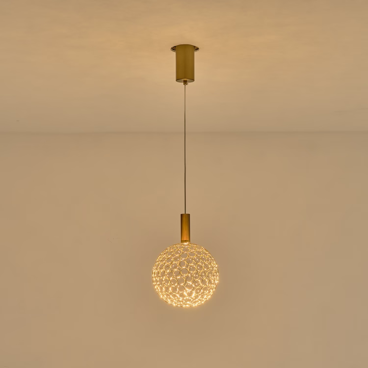 ΦΩΤΙΣΤΙΚΟ ΚΡΕΜΑΣΤΟ ΜΕΤΑΛΛΟ ΣΤΡΟΓΓΥΛΟ ΜΟΝΟΦΩΤΟ LED 6.3W 648Lm 3000K Φ200X1388mm ΧΡΥΣΟ ARTE ILLUMINA PERFORATO
