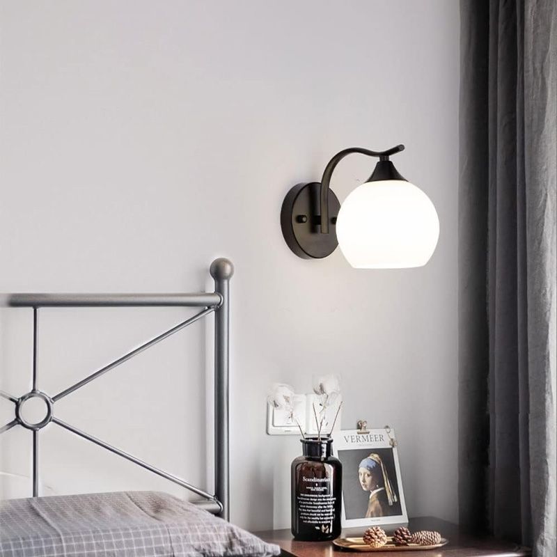 Διαθέτει μια σφαιρική, λευκή γυάλινη απόχρωση που διαχέει ομοιόμορφα ένα ζεστό και ευχάριστο φως, δημιουργώντας μια ατμόσφαιρα χαλάρωσης και άνεσης. Ο κομψός, καμπυλωτός μαύρος μεταλλικός βραχίονας προσθέτει μια πινελιά σύγχρονου στυλ και διακριτικής κομψότητας στον χώρο σας.