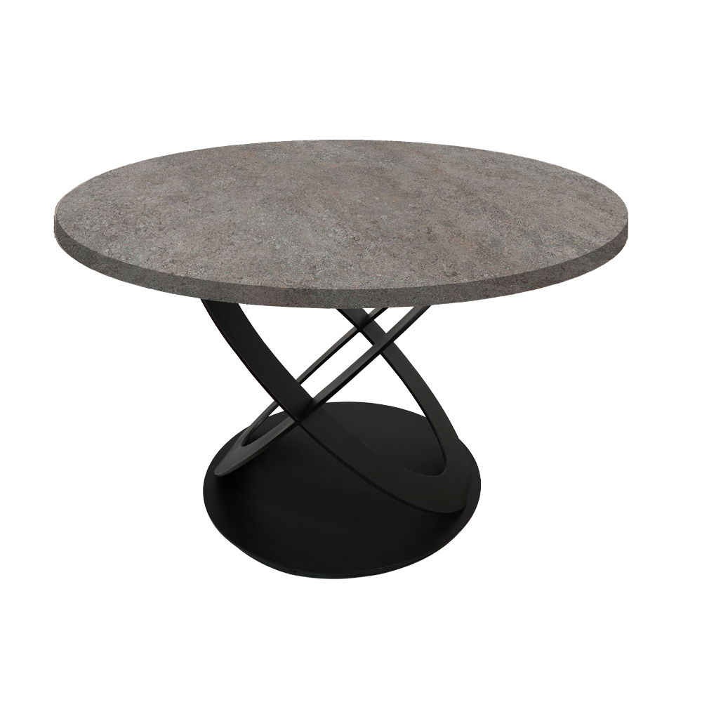 Επιφάνεια: Στρογγυλή επιφάνεια από υψηλής ποιότητας μελαμινη με όψη τσιμέντου σε σκούρο χρώμα, που προσδίδει ζεστασιά και κομψότητα.