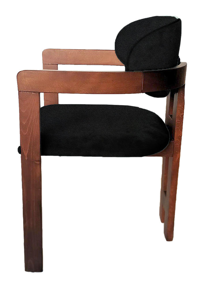 Ξύλινη πολυθρόνα με πρωτότυπο και ιδιαίτερο σχεδιασμό, δομημένη από δύο ενωμένα στοιχεία σε σχήμα Π στην πλάτη, που προσδίδουν μοναδική αισθητική και στιβαρότητα. Η πολυθρόνα διαθέτει μαξιλάρια τόσο στην πλάτη όσο και στο κάθισμα, εξασφαλίζοντας άνεση και εργονομία. Η κατασκευή της είναι από μασίφ ξύλο οξιάς σε ζεστή απόχρωση καρυδιάς, που αναδεικνύει τη φυσική υφή και την ποιότητα του υλικού, προσφέροντας μια διαχρονική και ζεστή εμφάνιση στον χώρο. Ιδανική επιλογή για όσους αναζητούν ένα συνδυασμό πρωτοτυπίας, άνεσης και φυσικού υλικού.