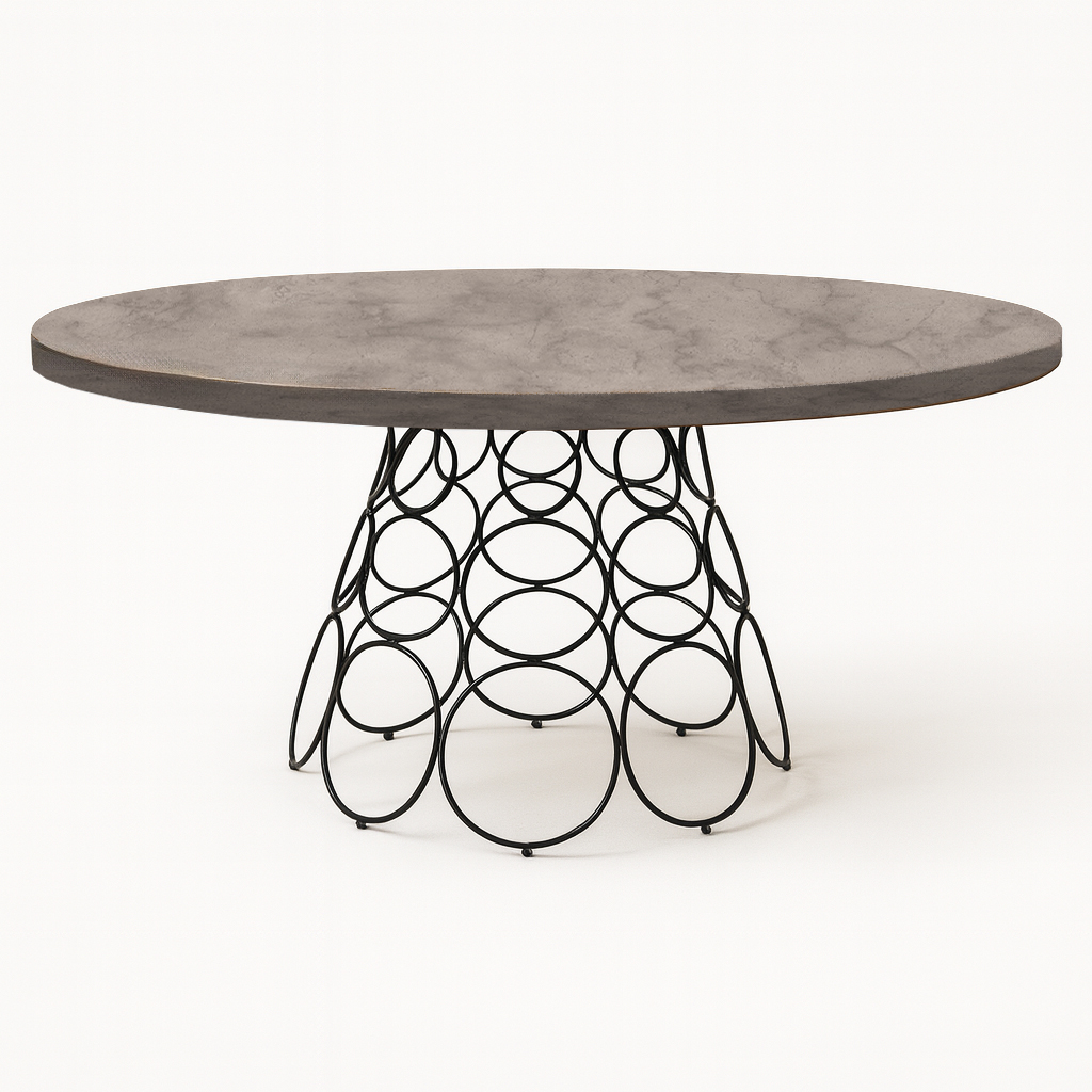 Αναβαθμίστε την αισθητική του χώρου σας με αυτό το εντυπωσιακό στρογγυλό σέτ τραπεζαρίας, το οποίο συνδυάζει industrial ύφος με σύγχρονο σχεδιασμό της μεταλλικής βάσης. H καλλιτεχνική μεταλλική βάση με κυκλικό μοτίβο δημιουργεί μια αίσθηση ελαφρότητας και κομψότητας ενώ οι καρέκλες με υφασμάτινη επένδυση και μοντέρνο σχεδιασμό εξασφαλίζουν άνεση και στυλ καθιστώντας το τραπέζι ιδανικό για elegant τραπεζαρίες, πολυτελή διαμερίσματα ή επαγγελματικούς χώρους υψηλής αισθητικής.