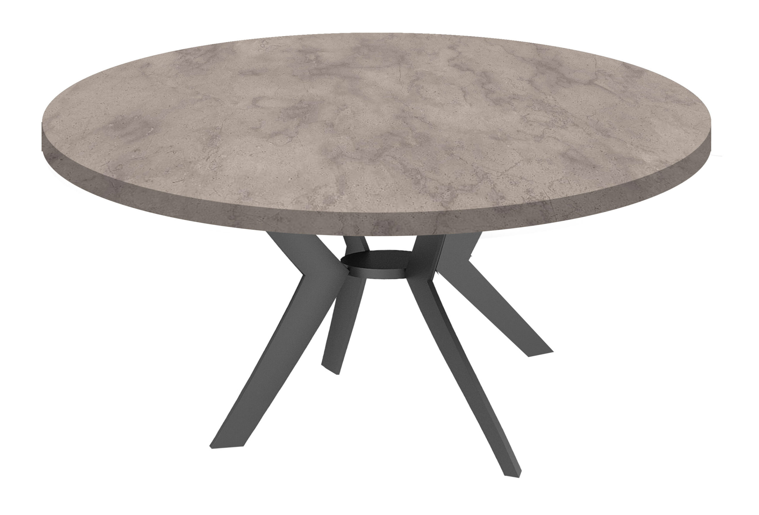 Τραπέζι: Στρογγυλή επιφάνεια με μελαμίνη με όψη τσιμέντου σε ανοιχτό χρώμα.