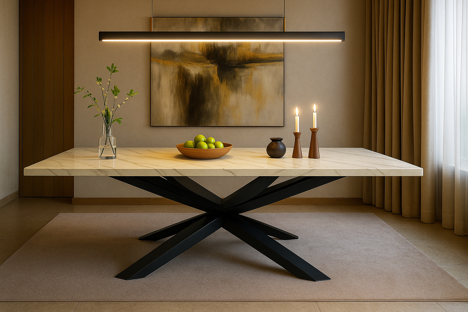 Αναδείξτε τον χώρο σας με την κομψή και επιβλητική τραπεζαρία “Spider”, έναν ιδανικό συνδυασμό σύγχρονου design και φυσικής αισθητικής.