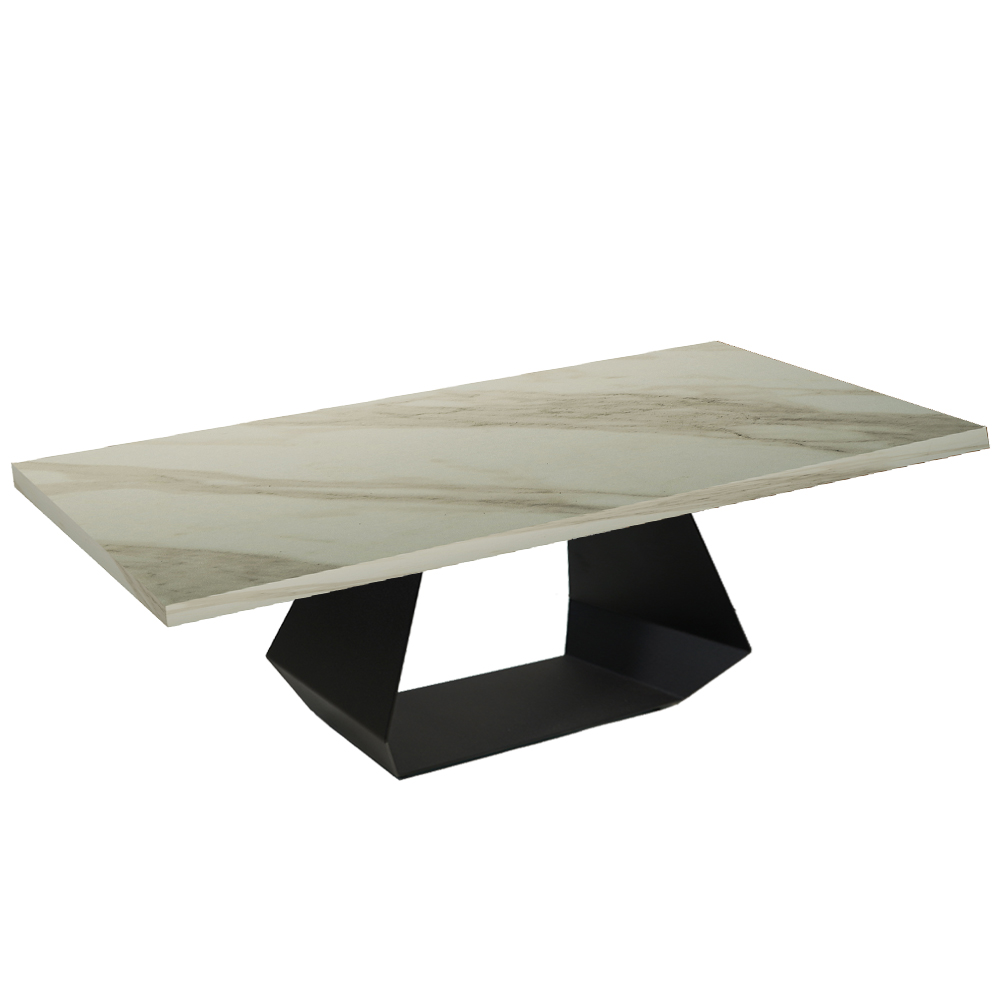 - Επιφάνεια τραπεζιού: Κατασκευασμένη από υψηλής ποιότητας μελαμίνη με όψη λευκού μάρμαρου, προσφέρει αίσθηση πολυτέλειας και διαχρονική αισθητική στον χώρο.