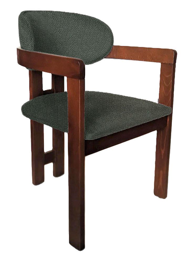 Ξύλινη πολυθρόνα με πρωτότυπο και ιδιαίτερο σχεδιασμό, δομημένη από δύο ενωμένα στοιχεία σε σχήμα Π στην πλάτη, που προσδίδουν μοναδική αισθητική και στιβαρότητα. Η πολυθρόνα διαθέτει μαξιλάρια τόσο στην πλάτη όσο και στο κάθισμα, εξασφαλίζοντας άνεση και εργονομία. Η κατασκευή της είναι από μασίφ ξύλο οξιάς σε ζεστή απόχρωση καρυδιάς, που αναδεικνύει τη φυσική υφή και την ποιότητα του υλικού, προσφέροντας μια διαχρονική και ζεστή εμφάνιση στον χώρο. Ιδανική επιλογή για όσους αναζητούν ένα συνδυασμό πρωτοτυπίας, άνεσης και φυσικού υλικού.
