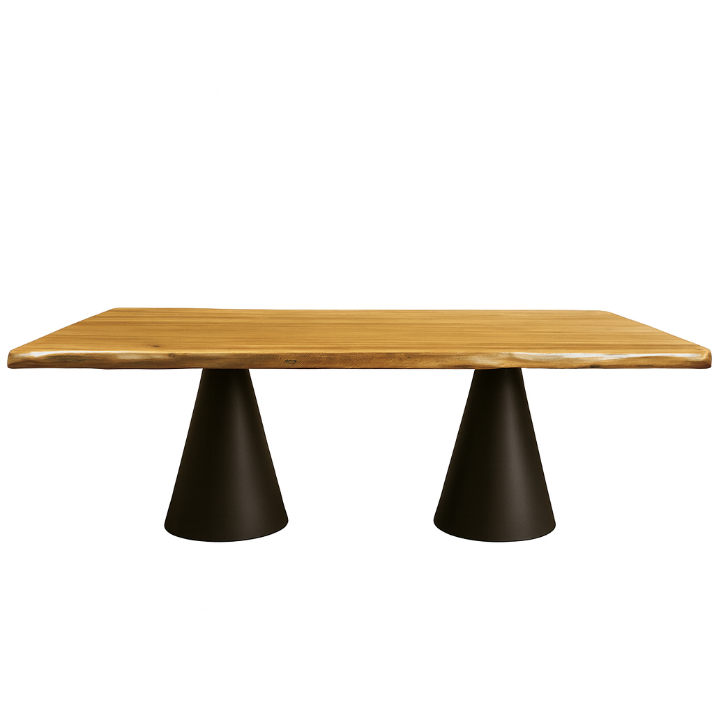 Η τραπεζαρία CONE αποτελεί την απόλυτη έκφραση της σύγχρονης κομψότητας. Με minimal γραμμές και μοναδική ισορροπία ανάμεσα στο ξύλο και το μέταλλο, προσδίδει έναν διακριτικό αλλά εντυπωσιακό χαρακτήρα σε κάθε χώρο. Η επιφάνειά της ρουστίκ δρύινη με ανάγλυφο τελείωμα αποπνέει ζεστασιά και φινέτσα, ενώ η μεταλλική βάση με κώνους προσθέτει αρχιτεκτονική δυναμική και σταθερότητα.