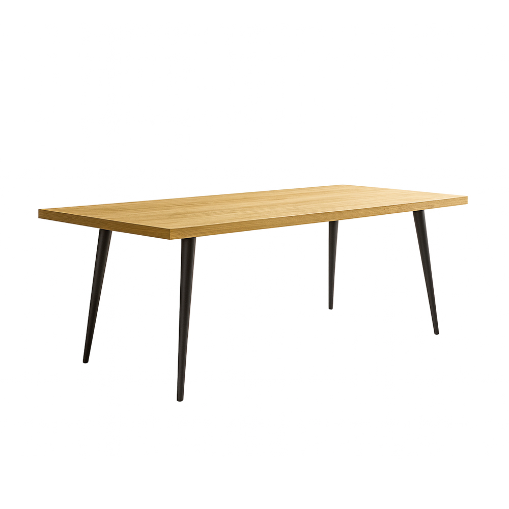 Αναβαθμίστε τον χώρο σας με αυτό το κομψό και μοντέρνο τραπέζι τραπεζαρίας. Ο συνδυασμός της φυσικής ξύλινης επιφάνειας με τα μαύρα μεταλλικά πόδια προσδίδει μια διαχρονική αισθητική που ταιριάζει σε κάθε είδος διακόσμησης — από μίνιμαλ έως βιομηχανικό στυλ.