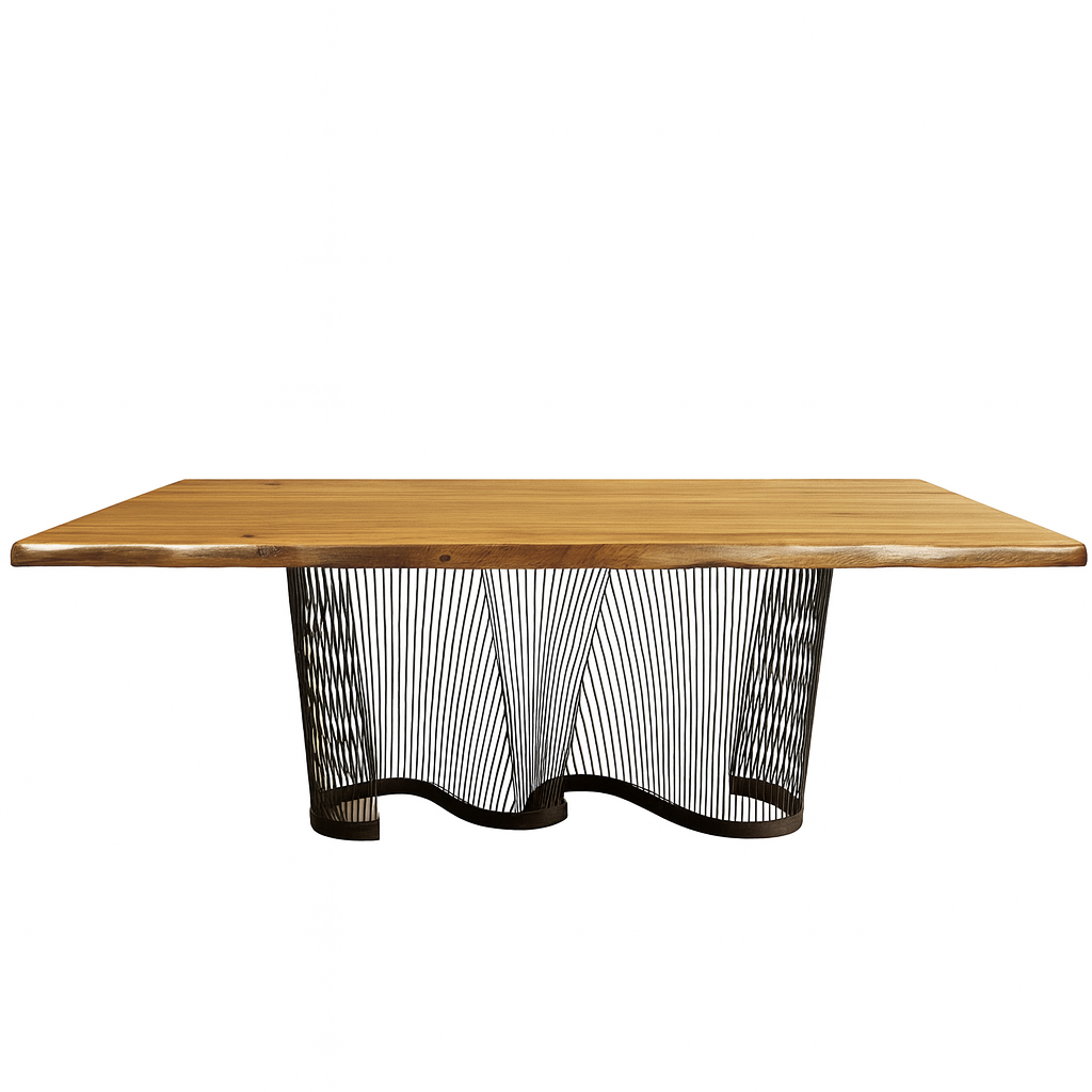 Η τραπεζαρία BUMER αποτελεί την απόλυτη έκφραση της σύγχρονης κομψότητας. Με minimal γραμμές και μοναδική ισορροπία ανάμεσα στο ξύλο και το μέταλλο, προσδίδει έναν διακριτικό αλλά εντυπωσιακό χαρακτήρα σε κάθε χώρο. Η επιφάνειά της ρουστίκ δρύινη με ανάγλυφο τελείωμα αποπνέει ζεστασιά και φινέτσα, ενώ η μεταλλική βάση με κυλινδρική σχεδίαση προσθέτει αρχιτεκτονική δυναμική και σταθερότητα.